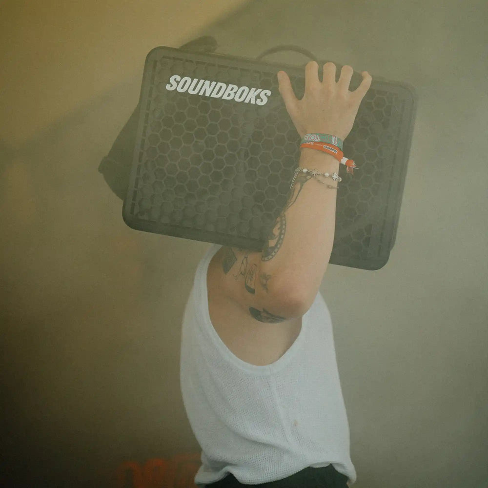 Við vitum ekki hvernig partýin þín líta út, en okkar eru ófyrirsjáanleg. Þess vegna er Soundboks hönnuð til að þola flest álag en hljóma samt hávært og fyllt. Styrkt bygging og gúmmíhlífar gera hana höggþolna. Innri íhlutirnir hafa IP65 vottun (en vegna bassaholanna má hún aldrei fara alveg í vatn). Rafhlaða og rafeindahlutir virka frá –10 til +40 °C (+14 til +104 °F).